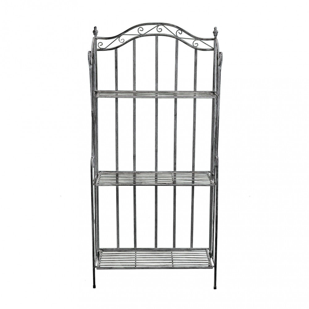 3-tier metal display case, powder coated in oxidized white with electrophoresis treatment