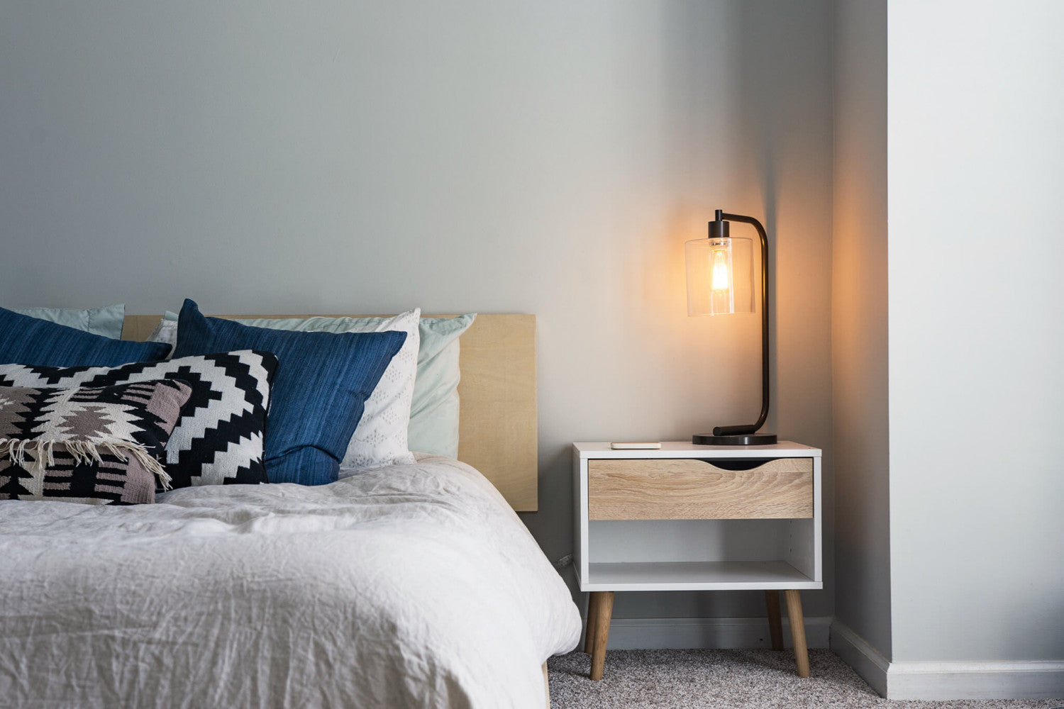 Cabinet with 1 drawer and 1 shelf in white and natural wood