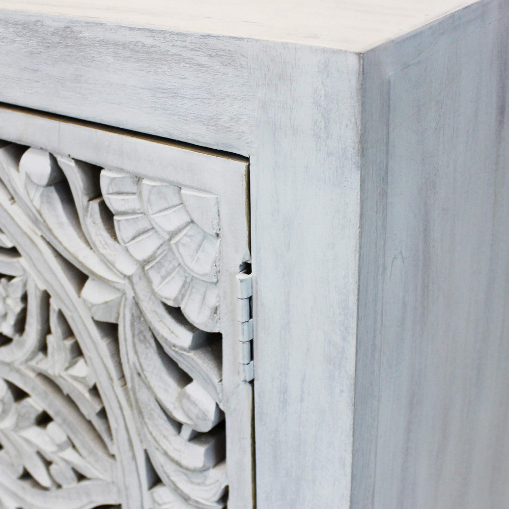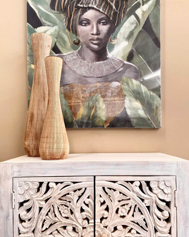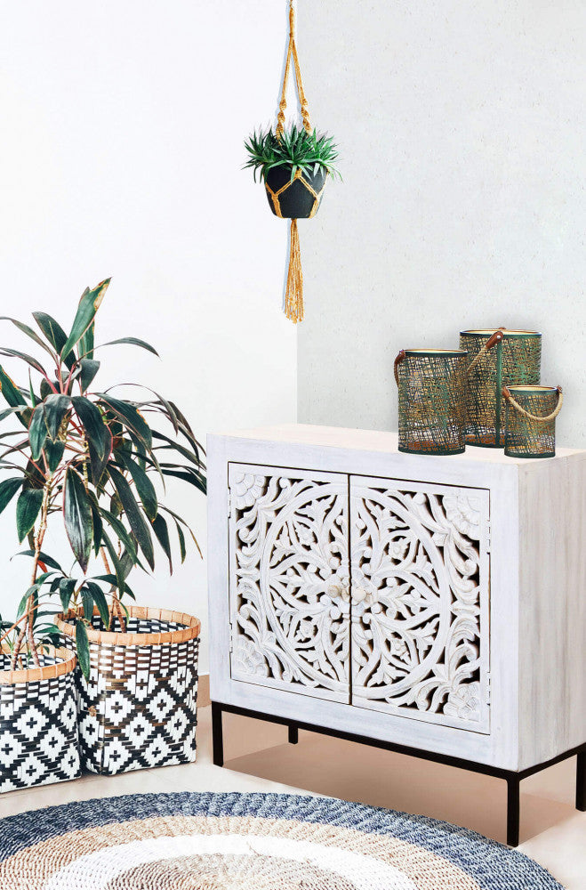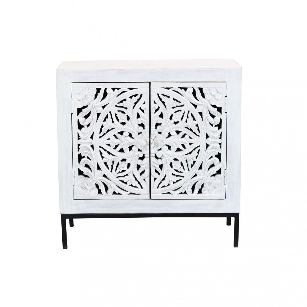 Cabinet with bleached decoration with 2 doors in mango wood with iron structure