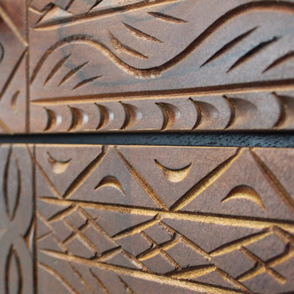 Wenge-decorated cabinet with 2 doors and 2 drawers in mango wood with iron frame