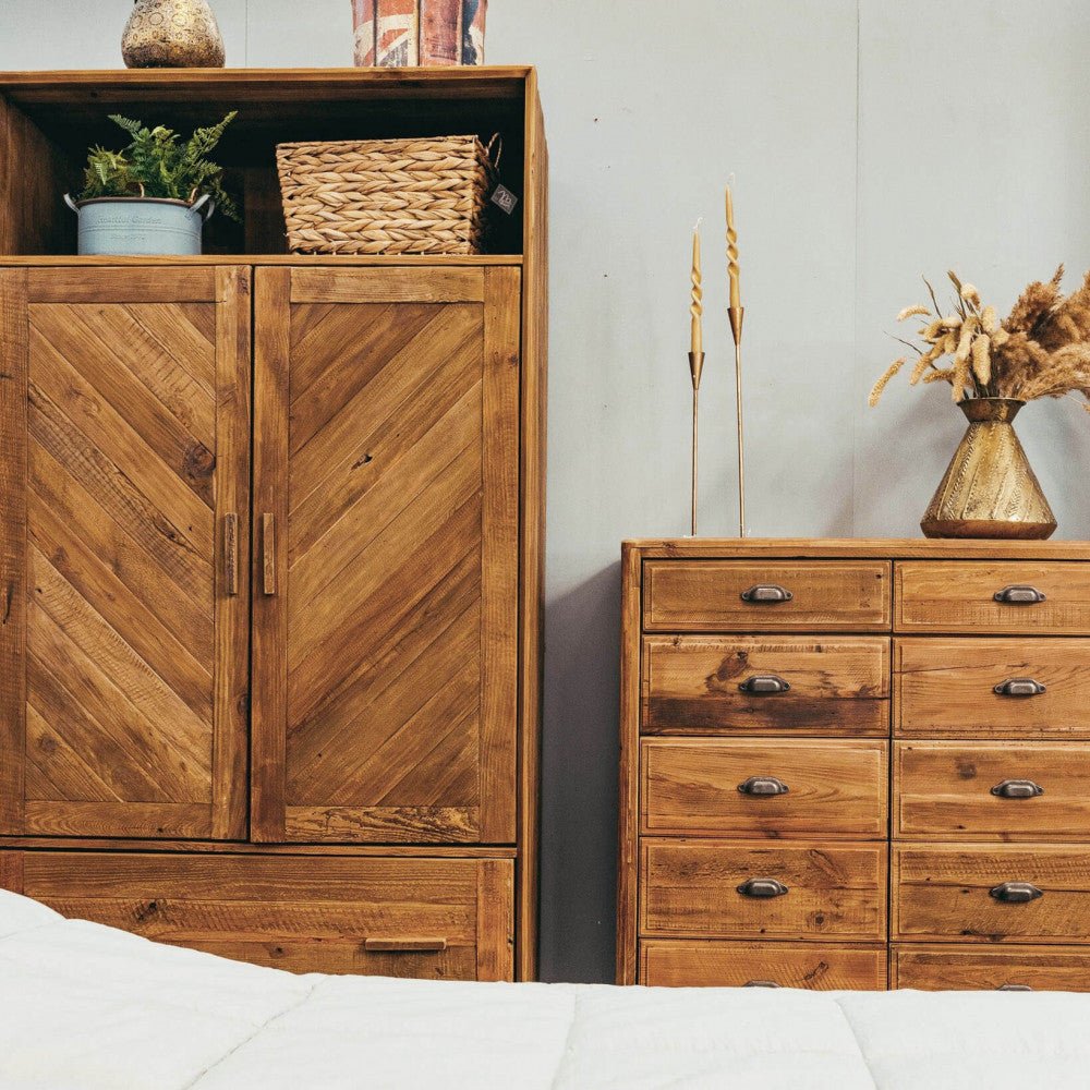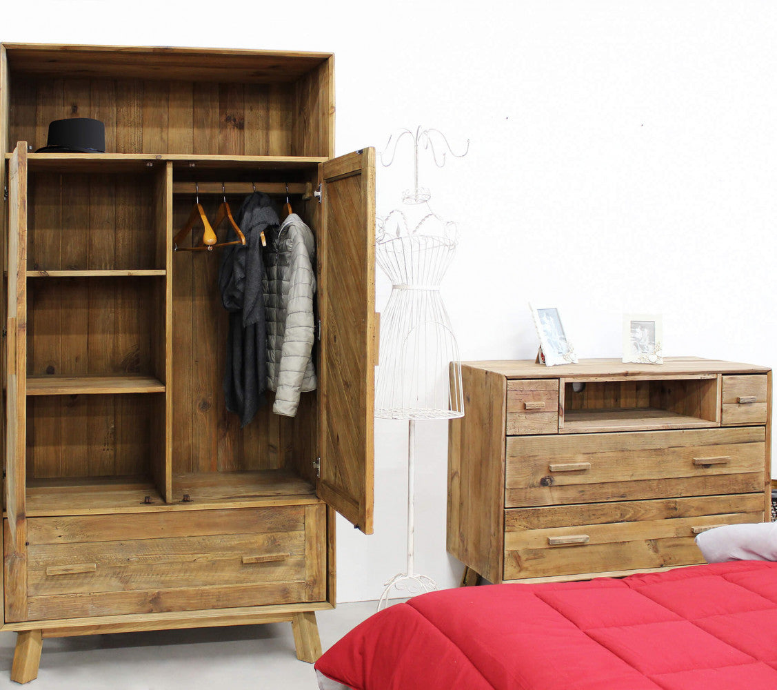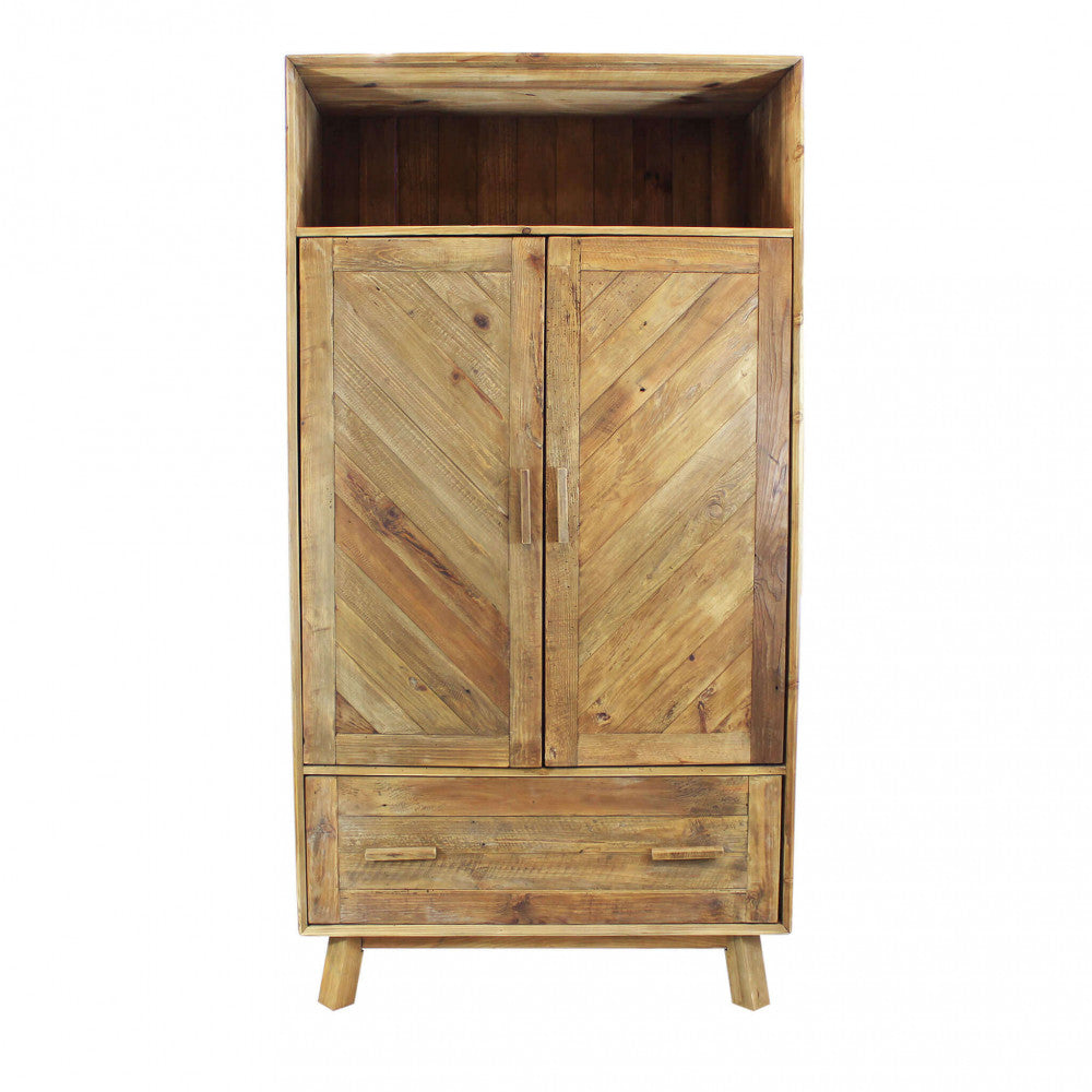 Cabinet with 1 shelf, 2 doors and 1 drawer made of recycled pine wood
