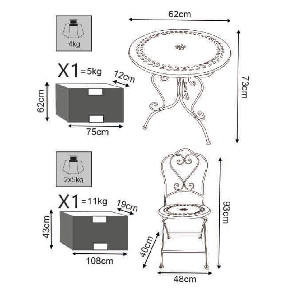 Dimensions: t. 62 x 73 h cm. 48 x 40 x 93 h cm