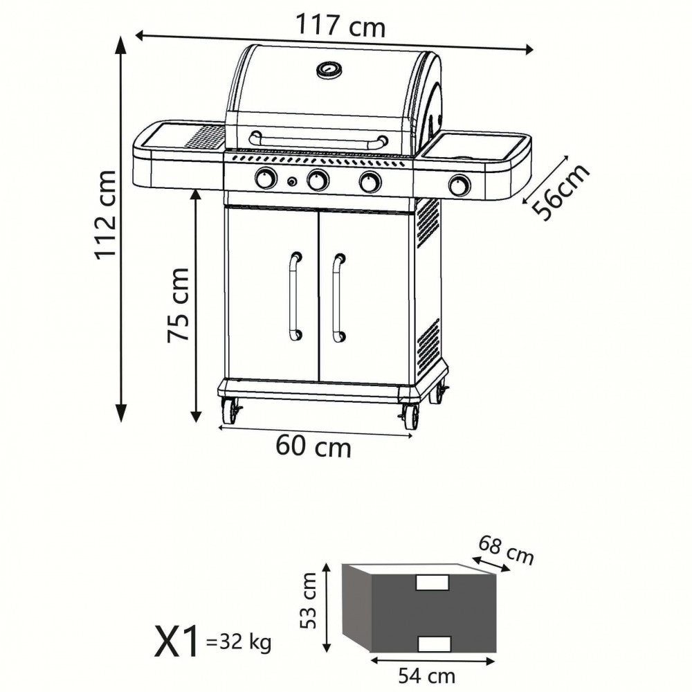 Barbecue in acciaio inox griglia di cottura in acciaio 3 f c/fornello lat- acc. automatica 3 bruc.acciaio inox 2.7 kw, 1 bruc.lat.acciaio inox 2.5 kw
