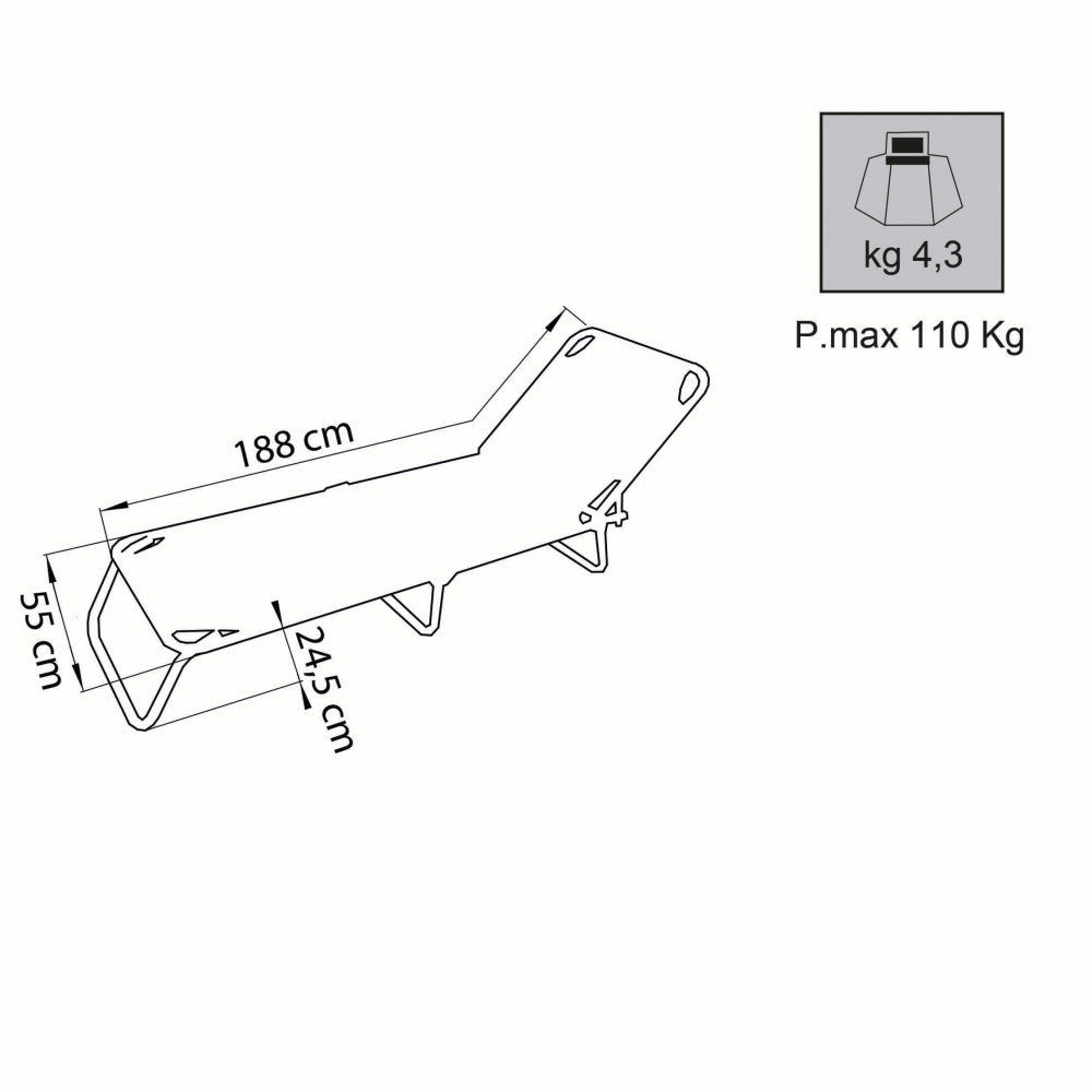 Disponibile blu, azzurro o verde lime struttura in metallo verniciato ø 18 x 1 mm, portata max 110 kg, tessuto in oxford 600d