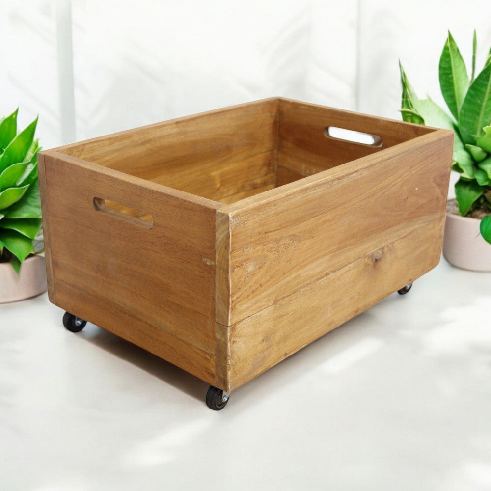 Cassetta con ruote in legno di mogano