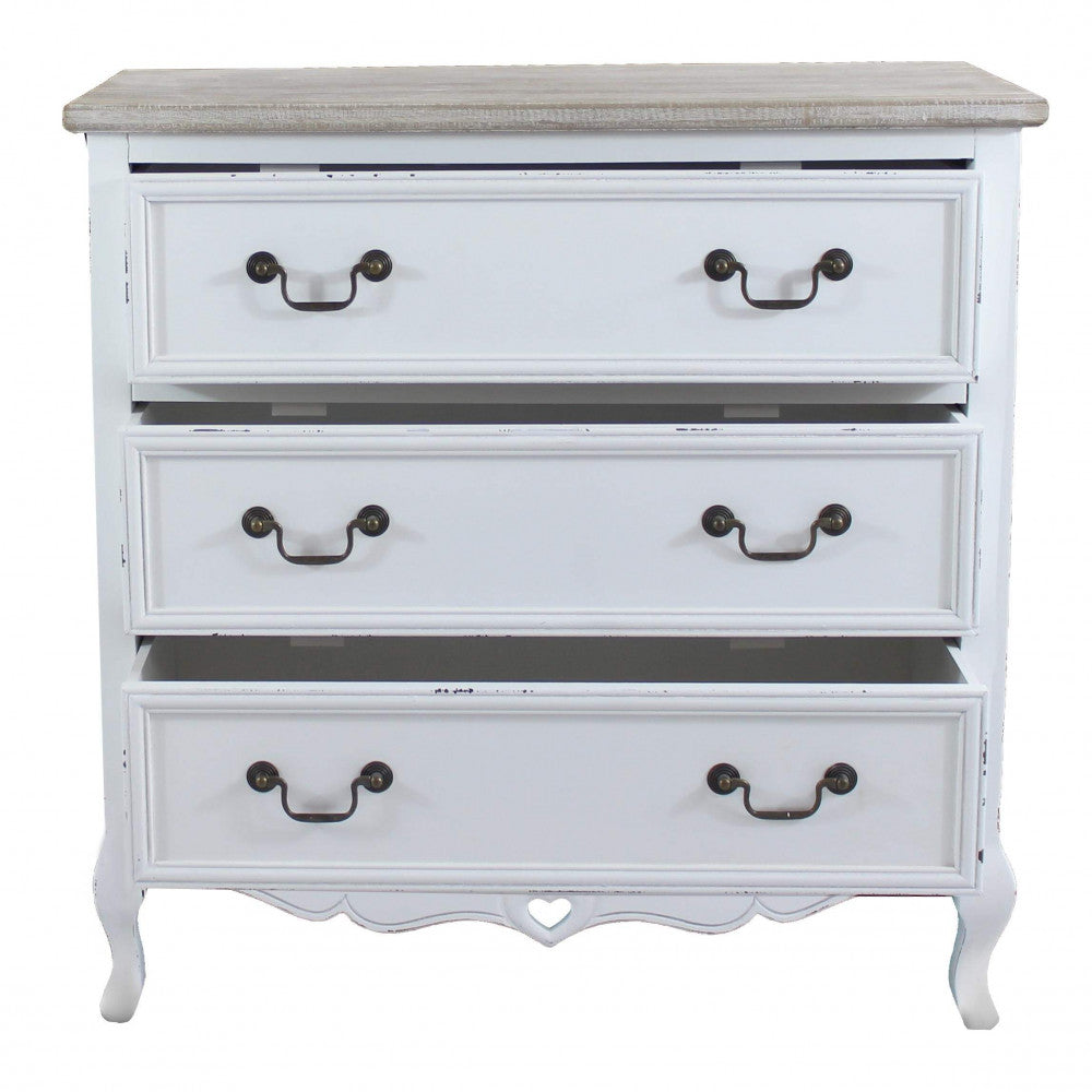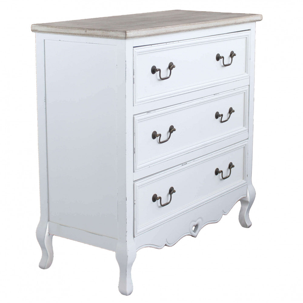 Struttura in legno di paulonia colore bianco e top colore nocciola 3 cassetti