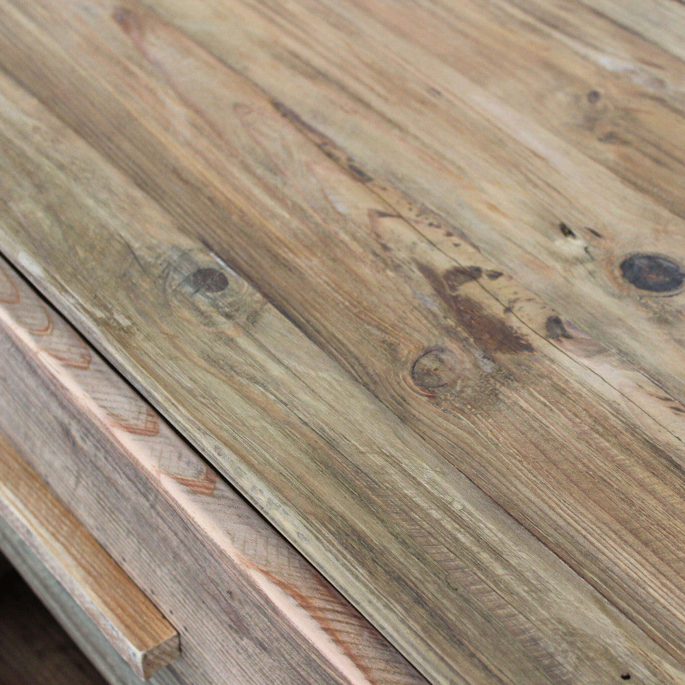 Credenza con 3 cassetti e 4 ripiani in legno di pino riciclato