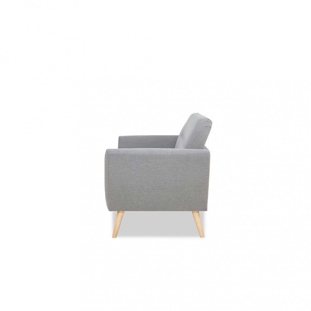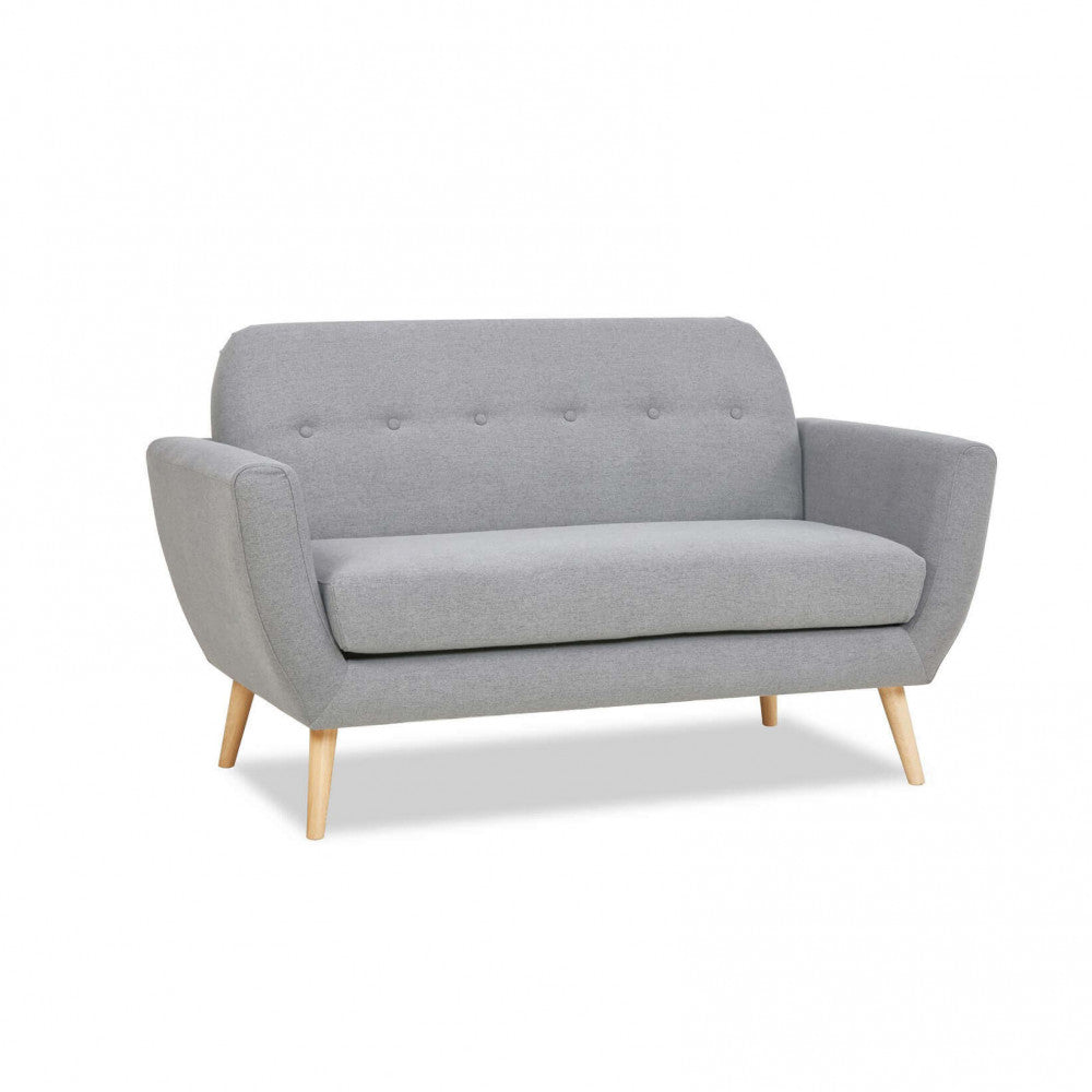 Divano grigio chiaro, grigio scuro o blu con bottoni e gambe in polipropilene