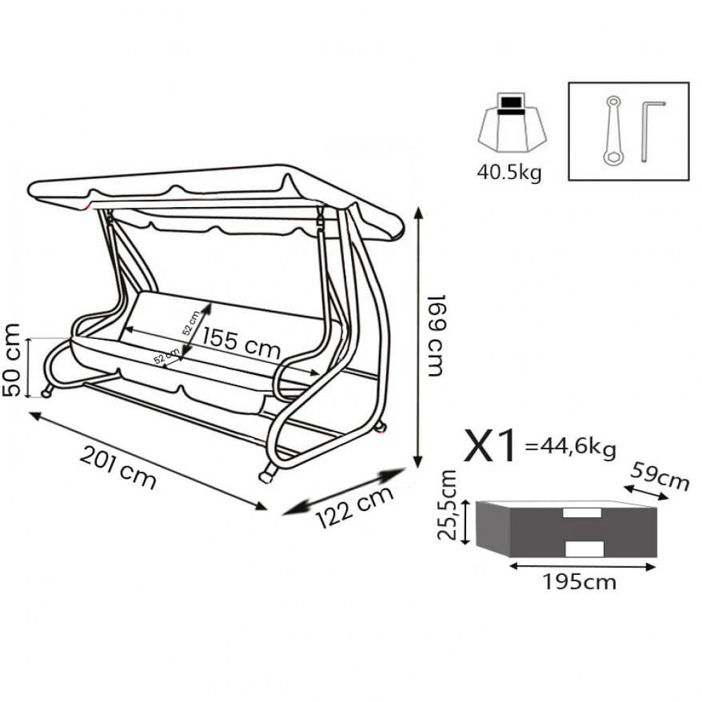 Dimensioni: cm 202 x 114 x 169 h