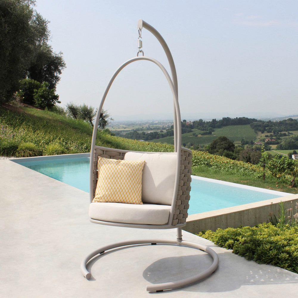 Struttura in allumino beige con corda beige cuscini con rivestimento tpu idrorepellente beige