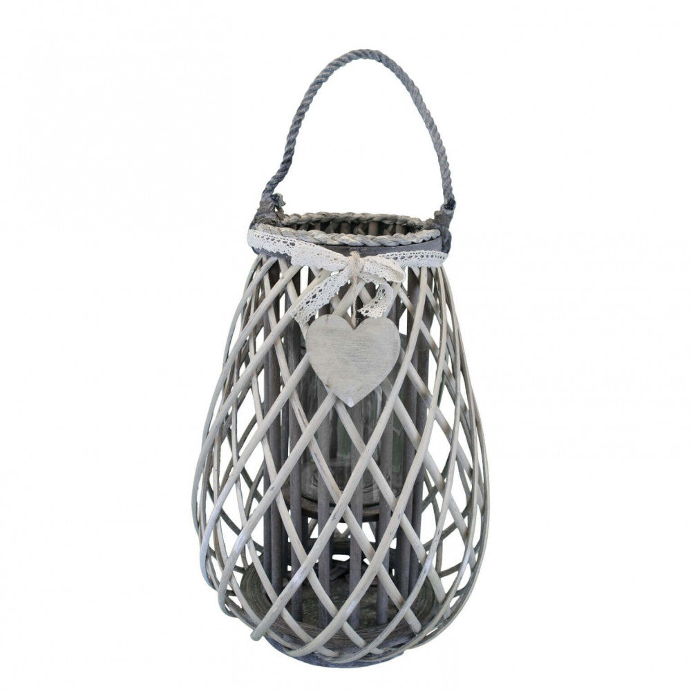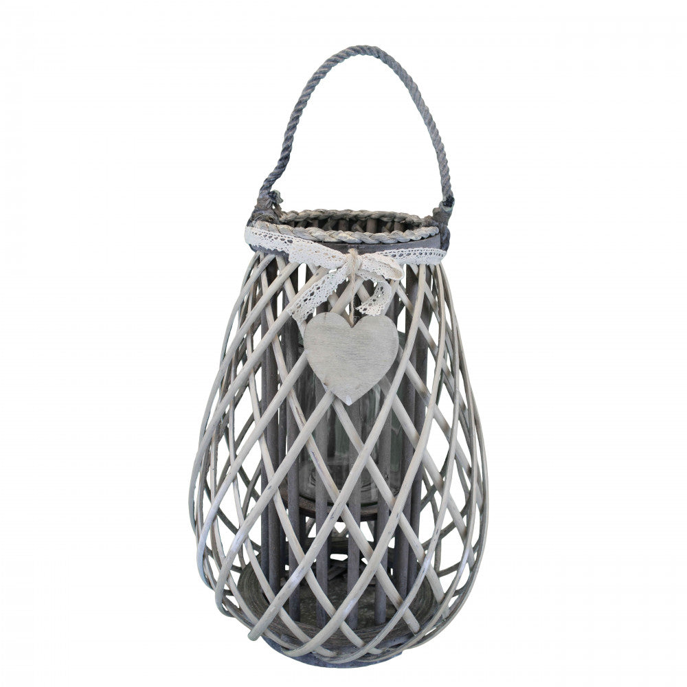 Lanterna bianca in vimini e vetro con nastro in pizzo e decoro a cuore