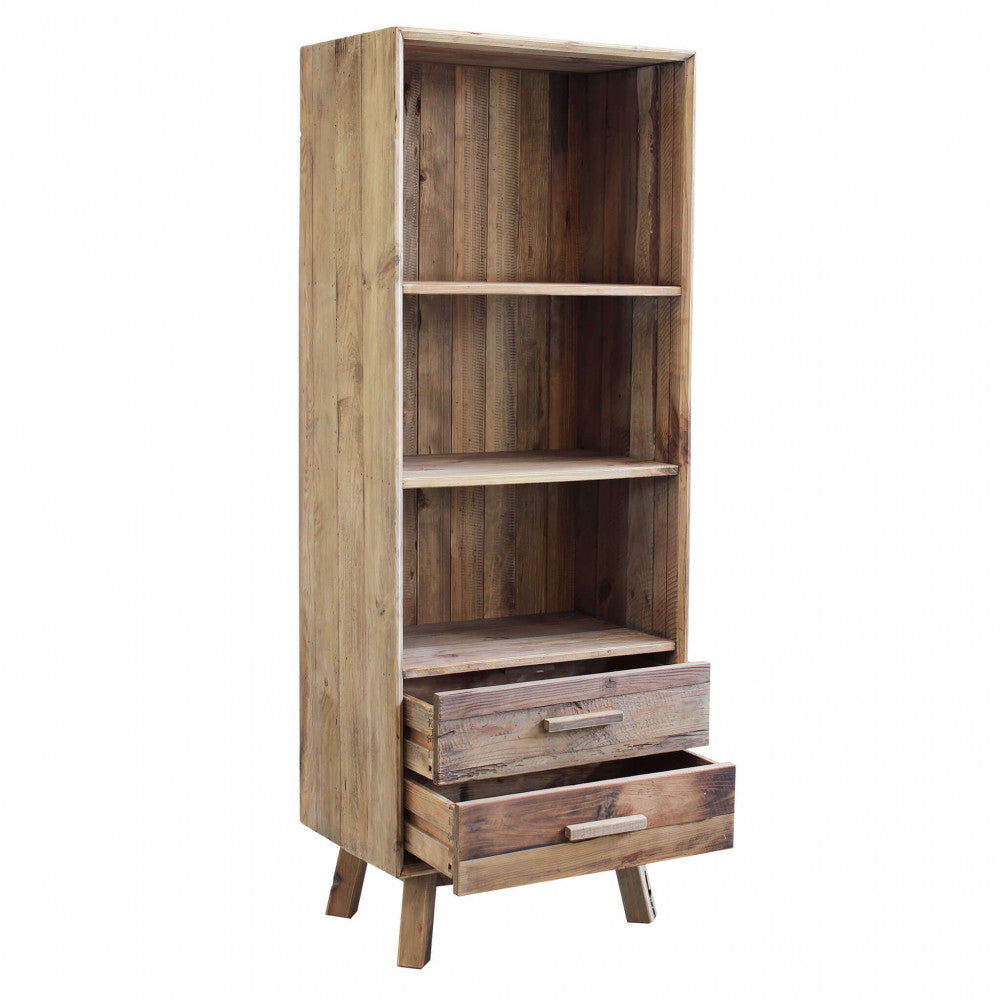 Libreria con 2 cassetti e 3 ripiani in legno di pino riciclato