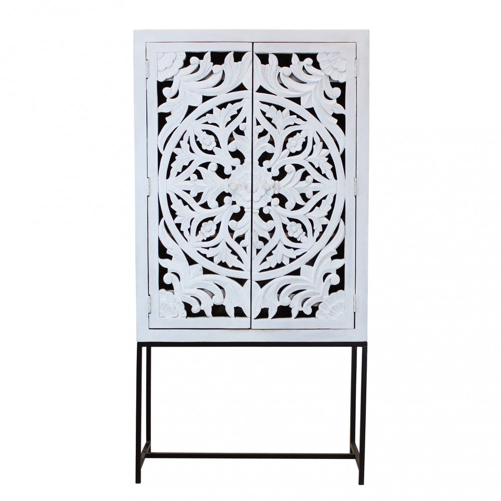 Mobile con decoro sbiancato con 2 ante in legno di mango con struttura in ferro