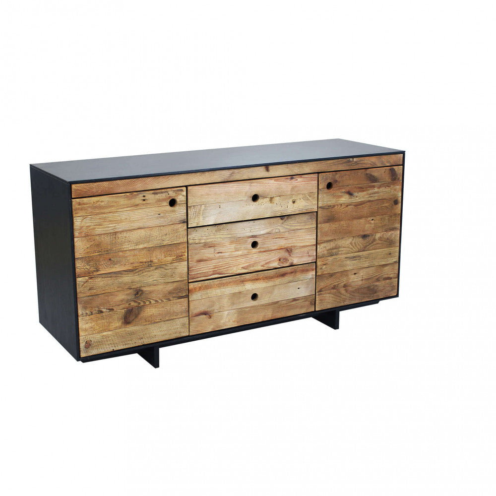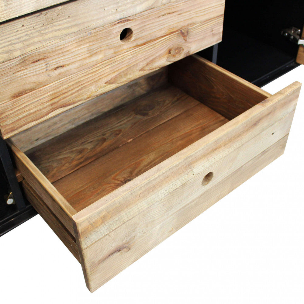 Mobile con 3 cassetti e 2 ante in legno di pino riciclato naturale e nero
