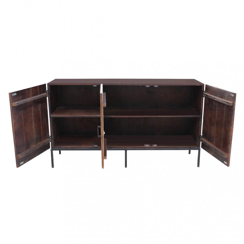 Mobile con decoro wengé con 3 ante in legno di mango con struttura in ferro
