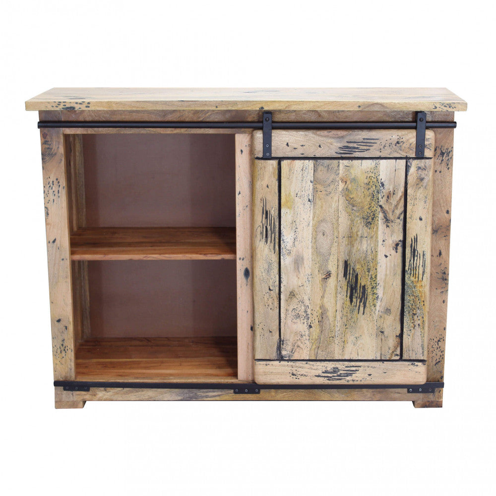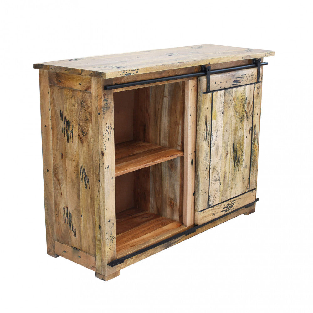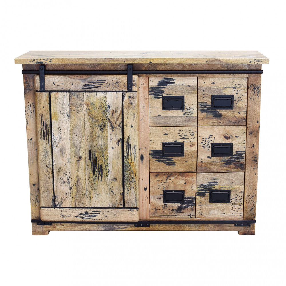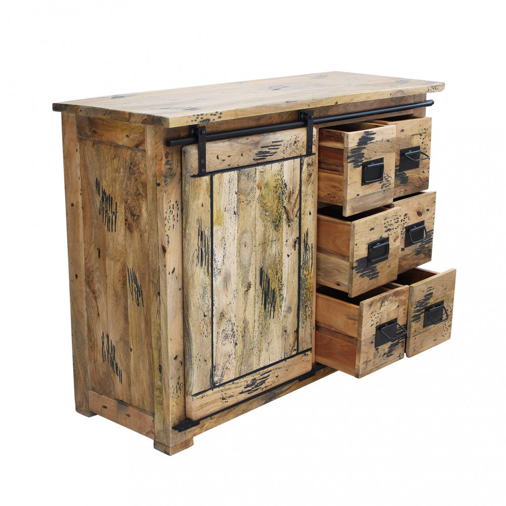 Mobile in legno di mango con 1 anta scorrevole, 2 ripiani e 6 cassetti