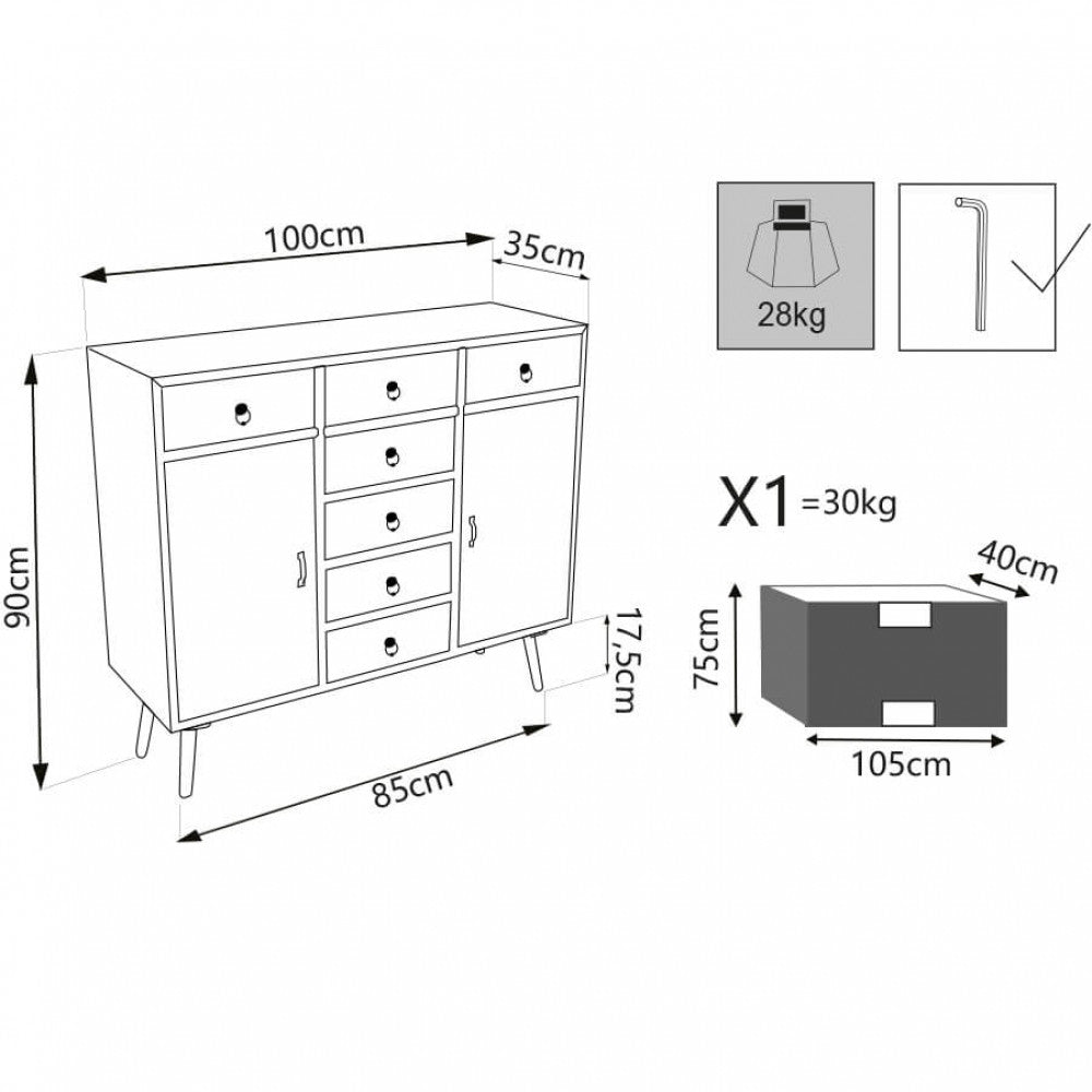 Dimensioni: cm 100 x 35 x 90 h