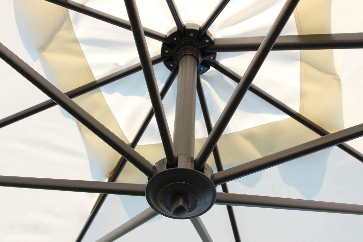 Telo in poliestere ecru 180 gr con antivento palo girevole in alluminio 45x64 e in metallo 20x40 mm 8 stecche metallo 13 x 22 mm, base a crociera