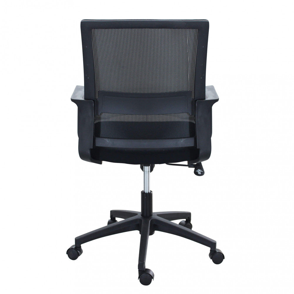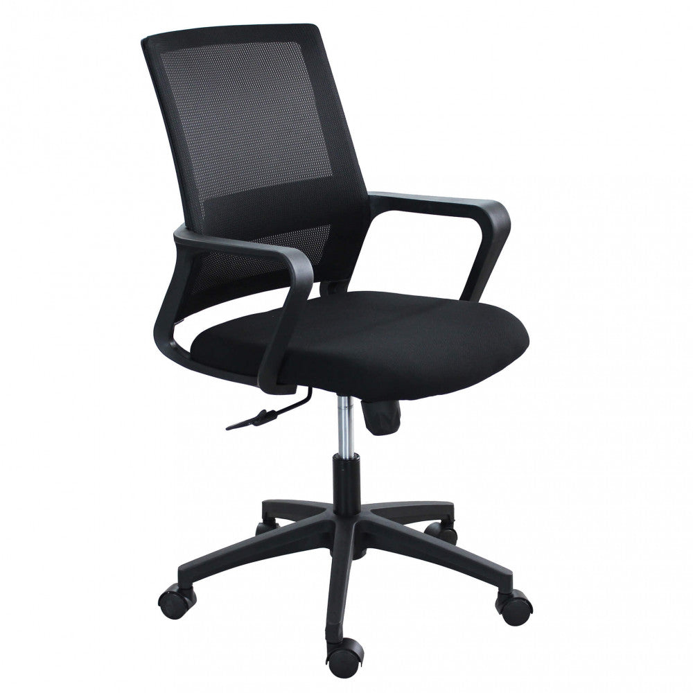 Poltrona da ufficio in rete, braccioli in plastica e base pp con ruote e poggiatesta