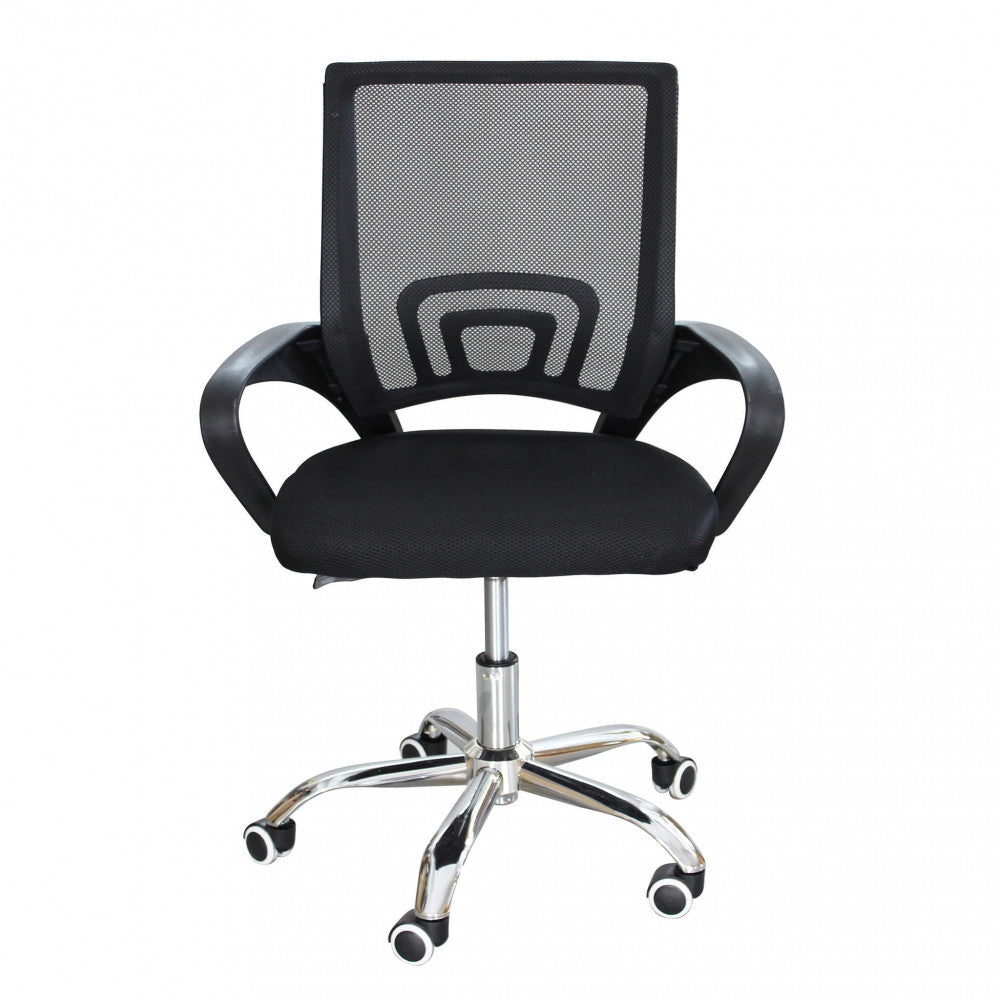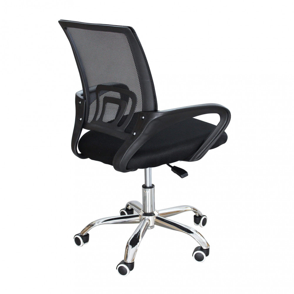 Poltrona da ufficio in rete, braccioli in plastica e base cromata con ruote