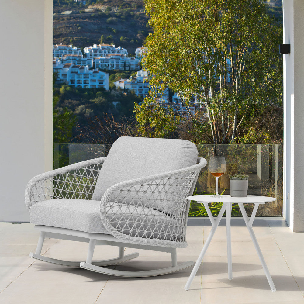 Struttura in allumino bianco con corda grigio mélange cuscini con rivestimento tpu idrorepellente grigio chiaro