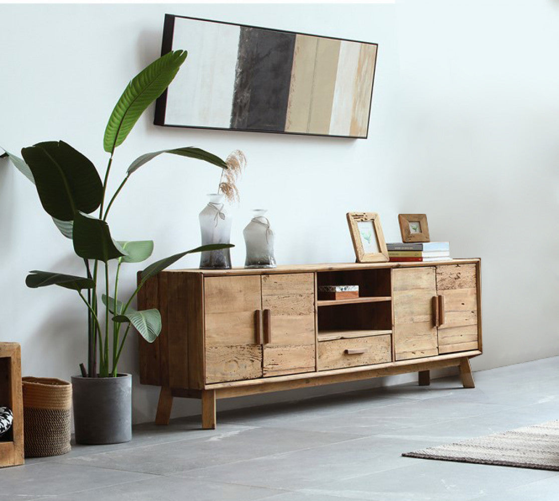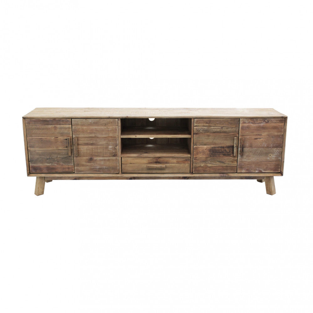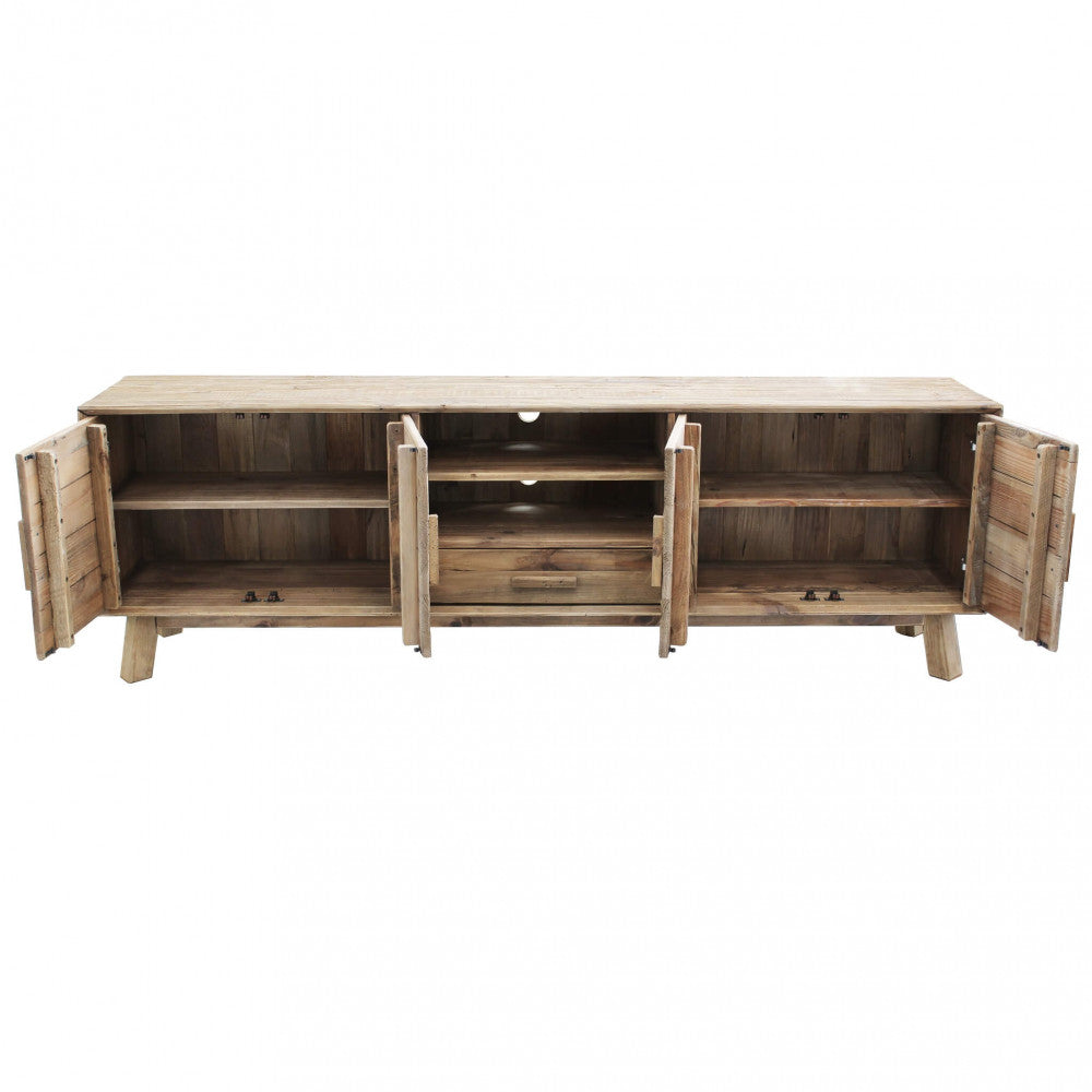 Porta tv con 4 ante, 1 cassetto e 2 ripiani in legno di pino riciclato