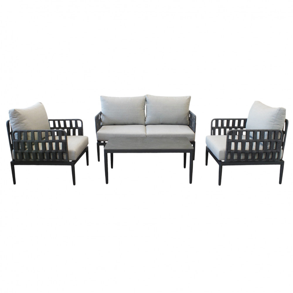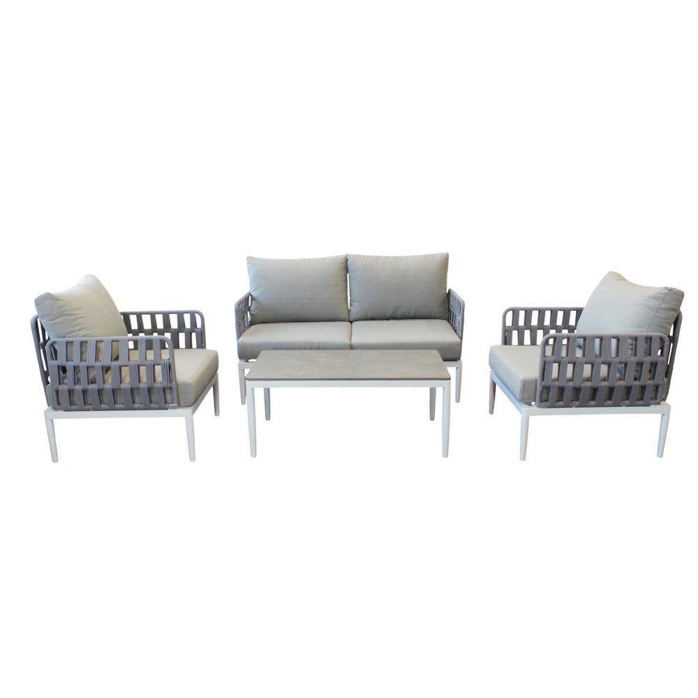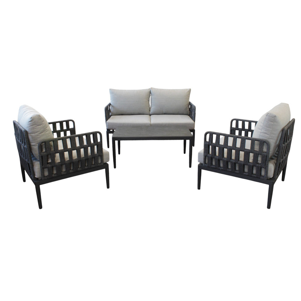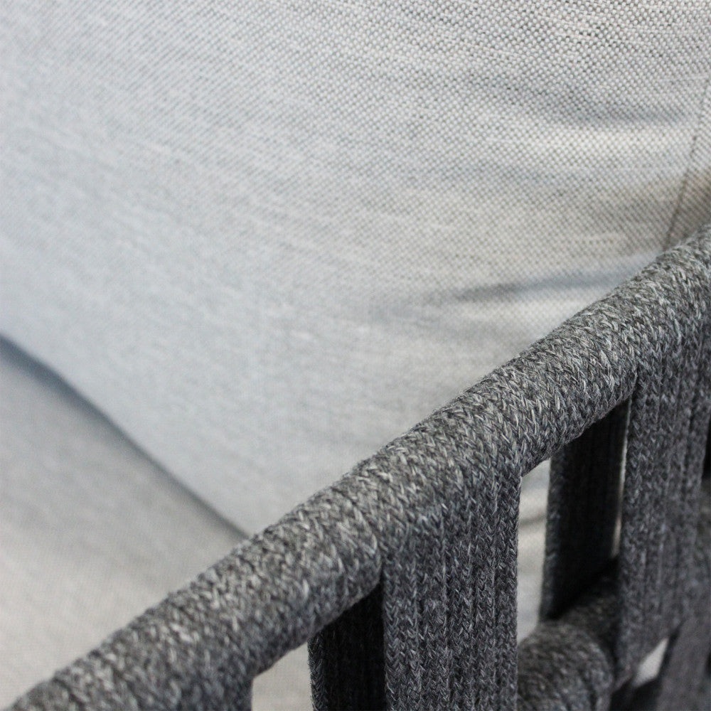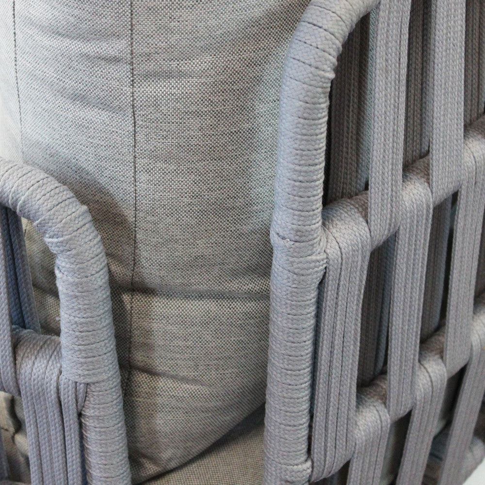Struttura in alluminio grigio chiaro, naturale o antracite rivestimento in corda in pvc con cuscini