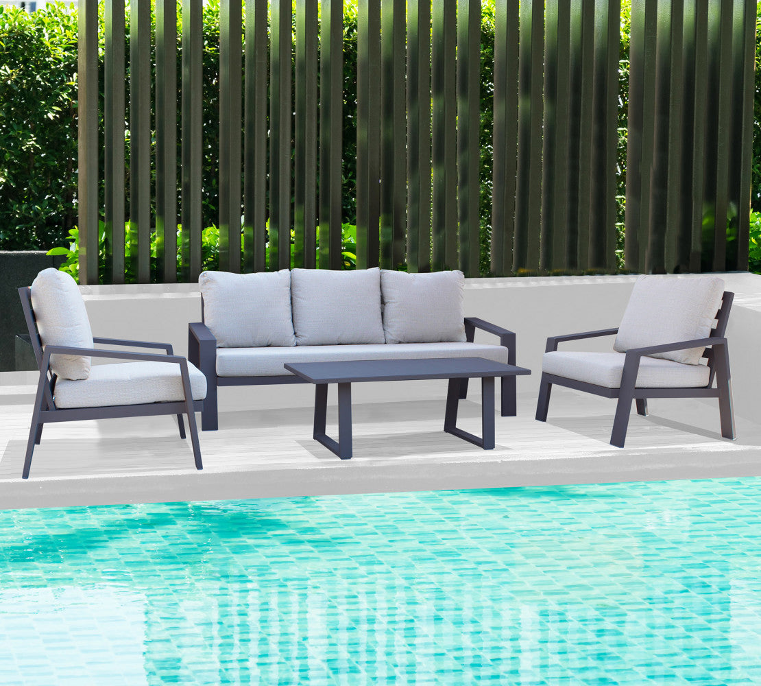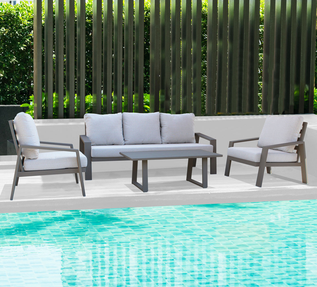 Struttura in allumino tortora, antracite, bianco o taupe con cuscini in poliestere di spessore 12 cm, kd