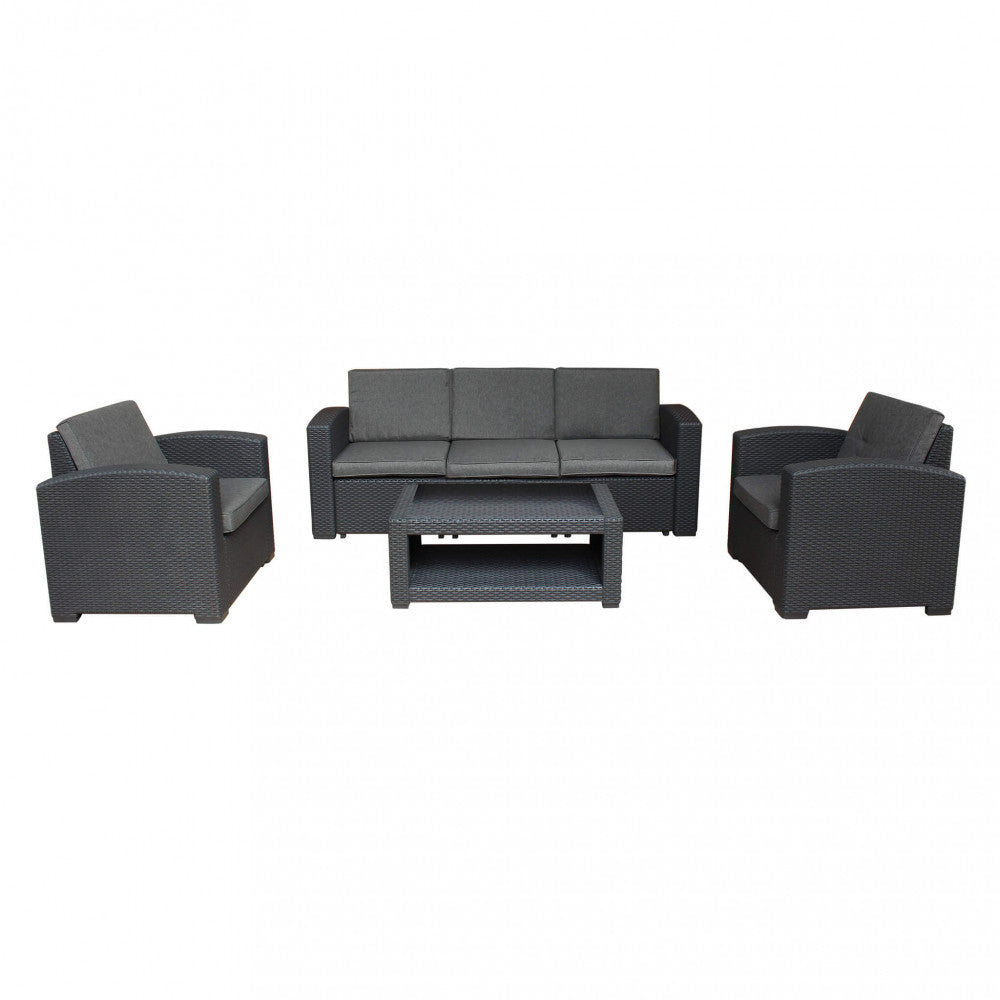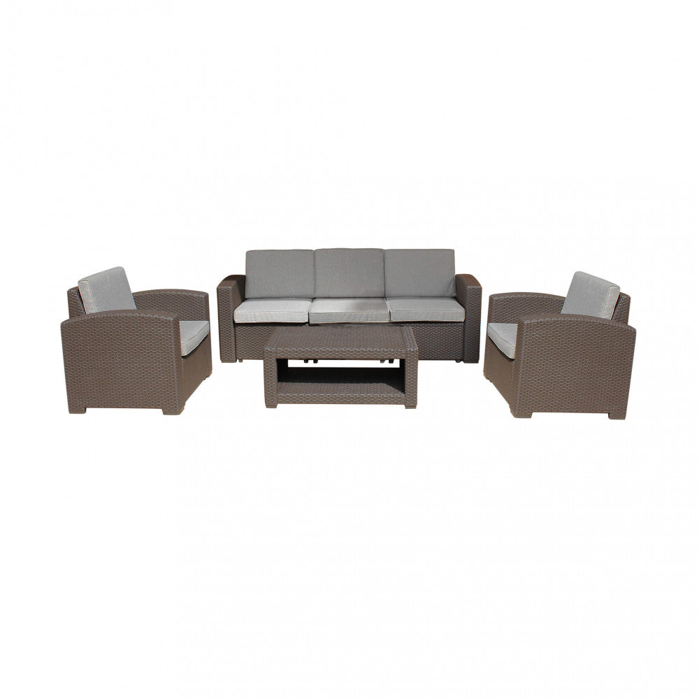 Struttura in plastica stampata, wicker marrone materiale uv protection cuscini taupe spessore 8 cm