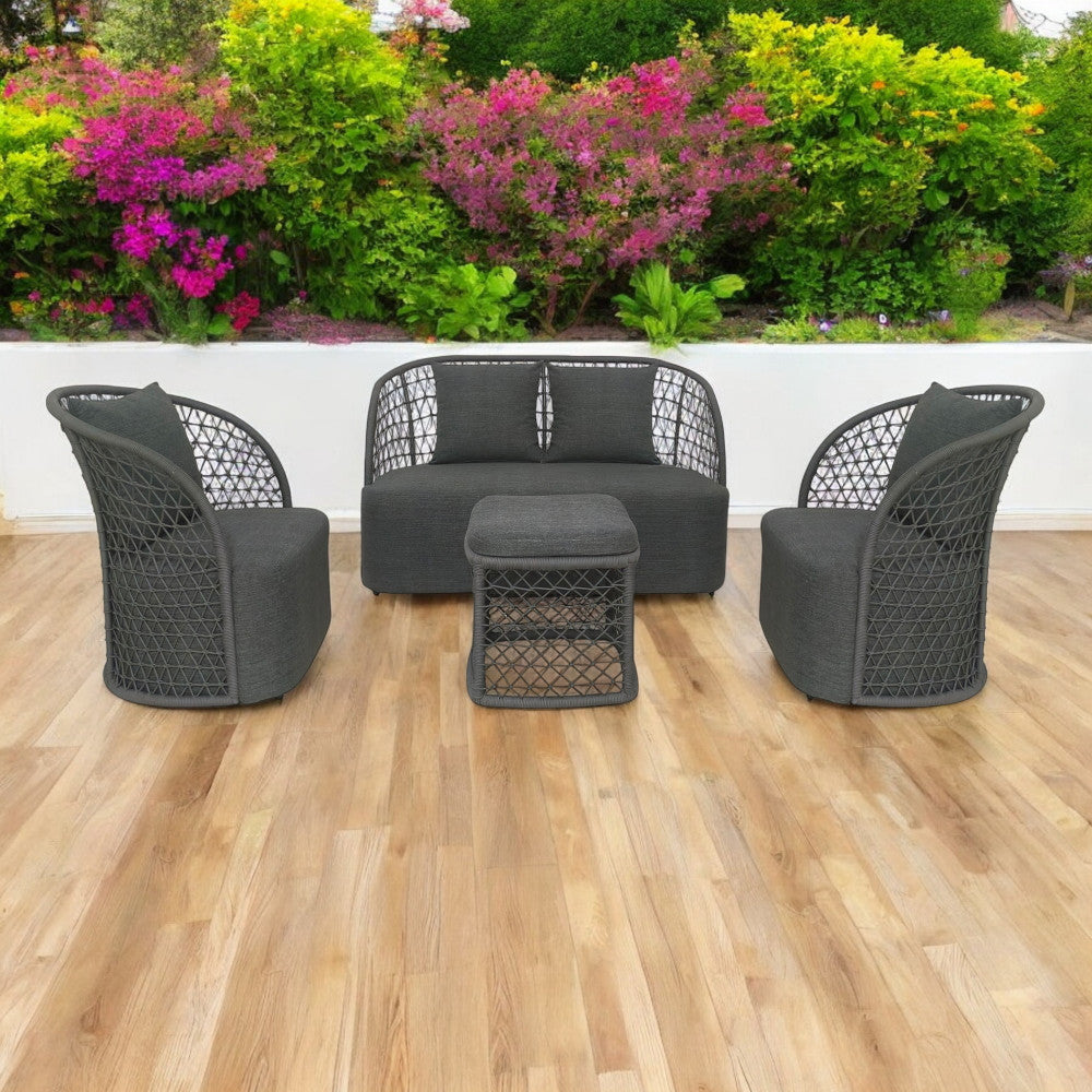 Struttura in alluminio braccioli e schienali rivestimento in corda in pvc