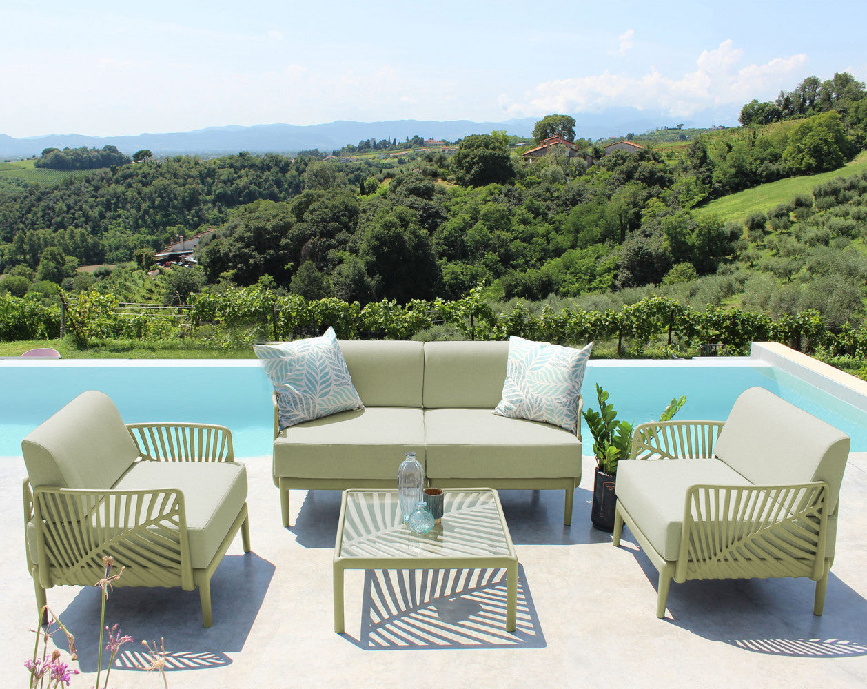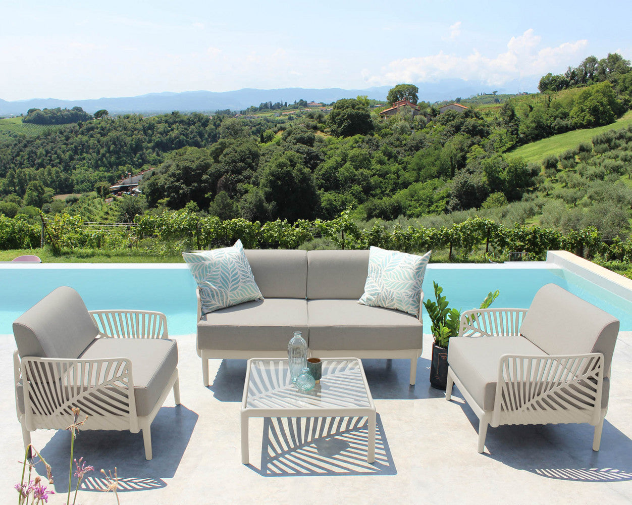 Struttura in polipropilene bianco, taupe, torotora o verde con cuscino
