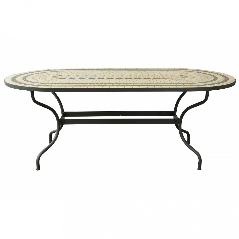 Piano ovale con mosaico beige e antracite base in ferro verniciato a polvere antracite